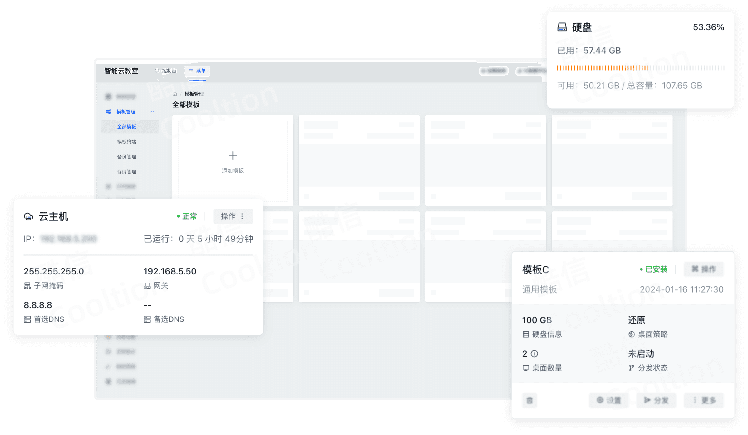 針對現代數字化教學管理研發的一套新型課堂管理解決方案,本方案從教學,管理,運維等多維度提供數據保護、鏡像分發、網絡管控、教學管理為一體的云教室整體解決方案。